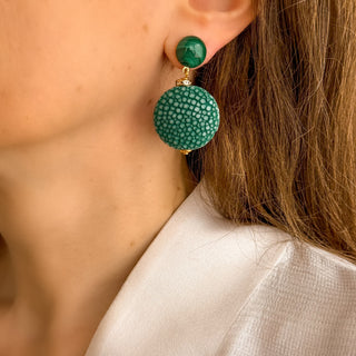 Boucles d'oreille jaspe et galuchat bleu Morganne
