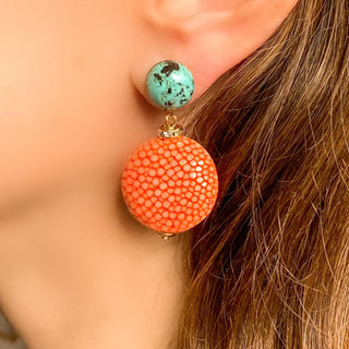 Boucles d'oreille jaspe et galuchat bleu Morganne