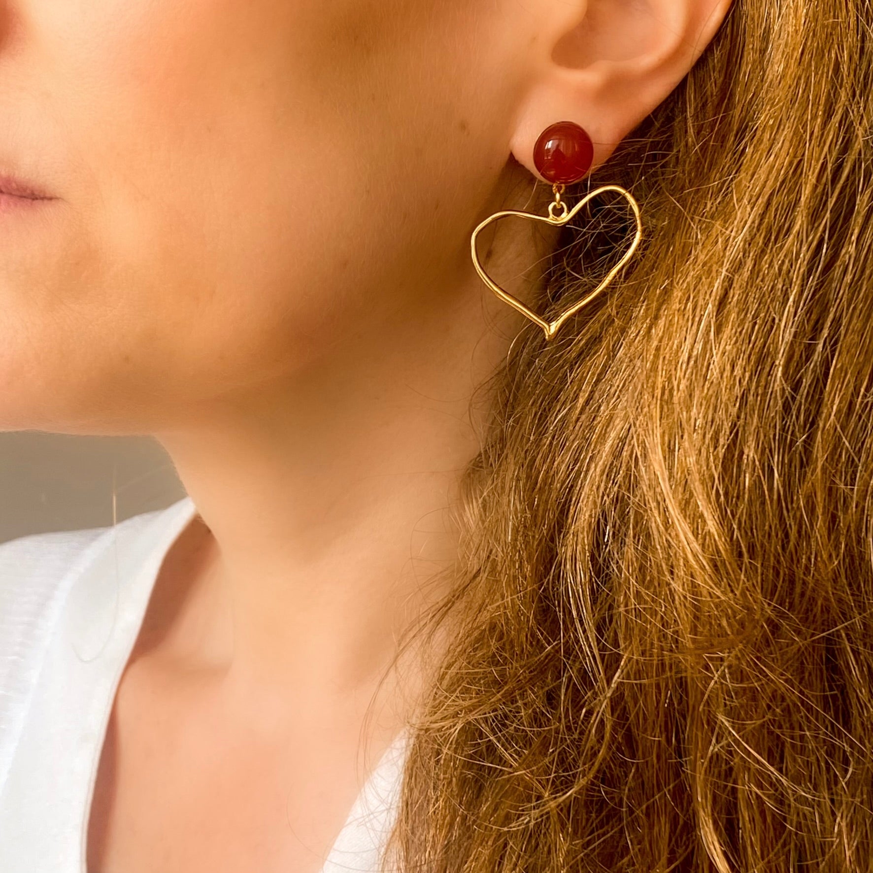 Elles sont en laiton doré à l’or fin 24 carats, avec sa pierre naturelle : cornaline rouge.