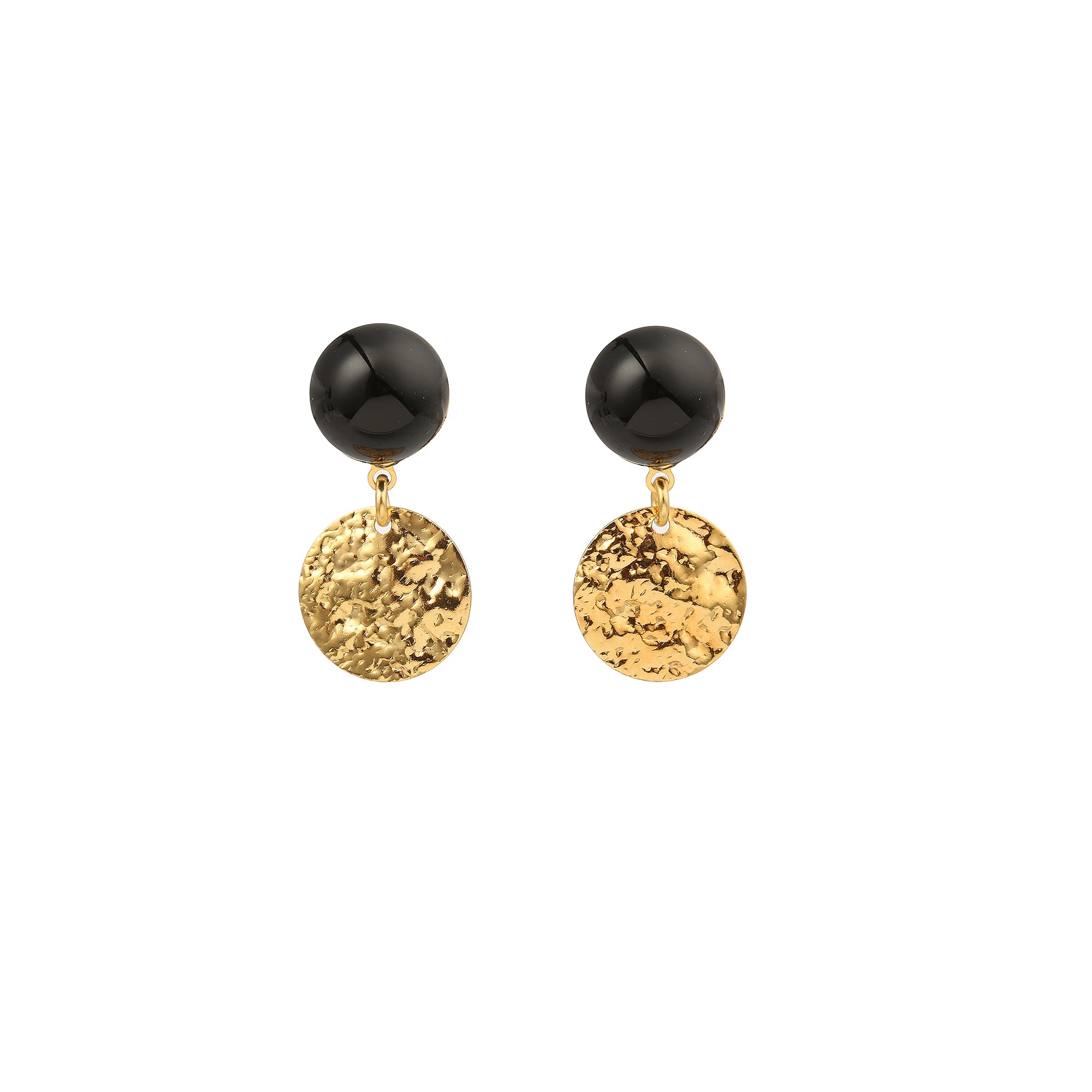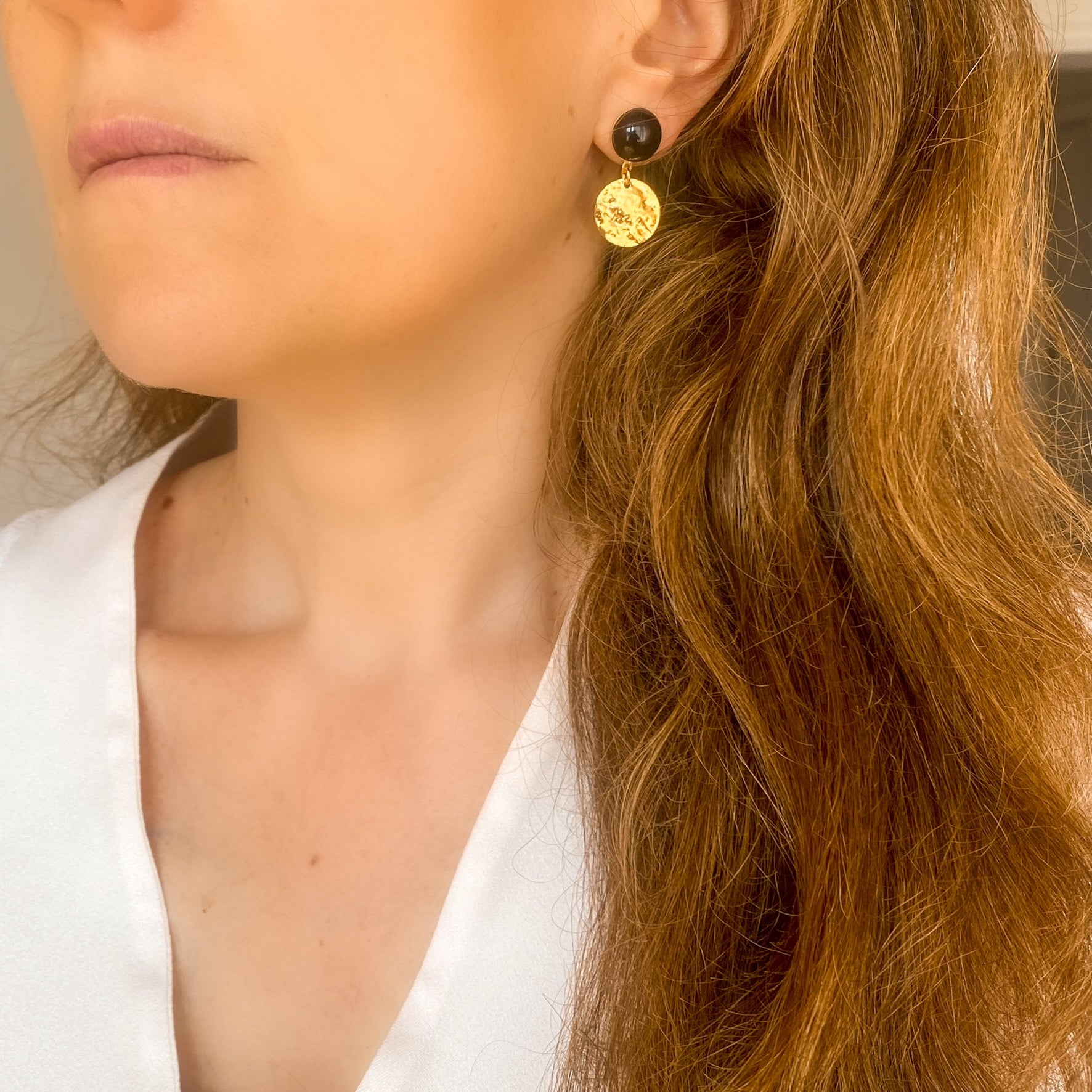 Elles sont en laiton doré à l’or fin 24 carats, avec ses pierres naturelles : agate noire.