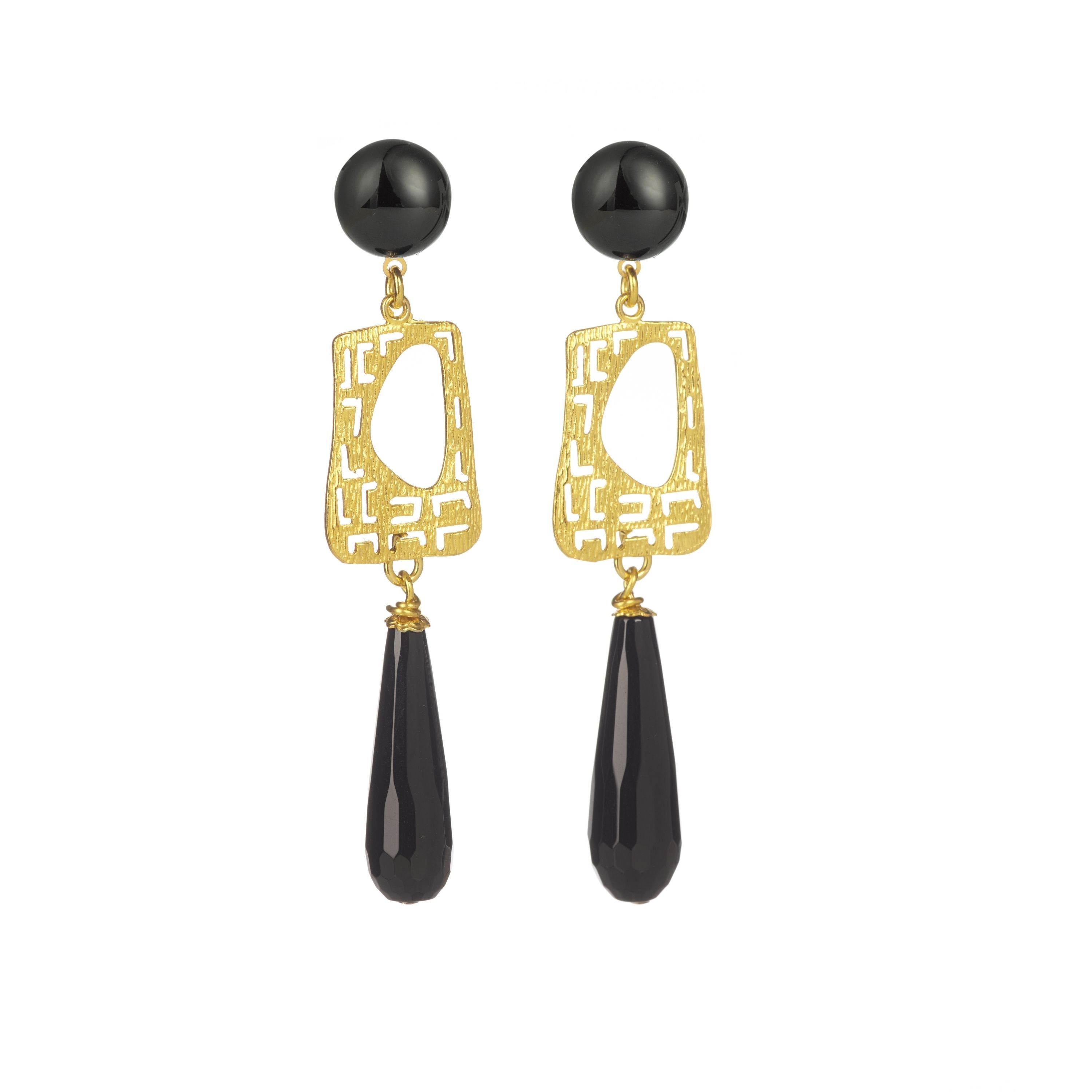 Elles sont en laiton doré à l’or fin 24 carats, avec ses pierres naturelles : agate noire et onyx.