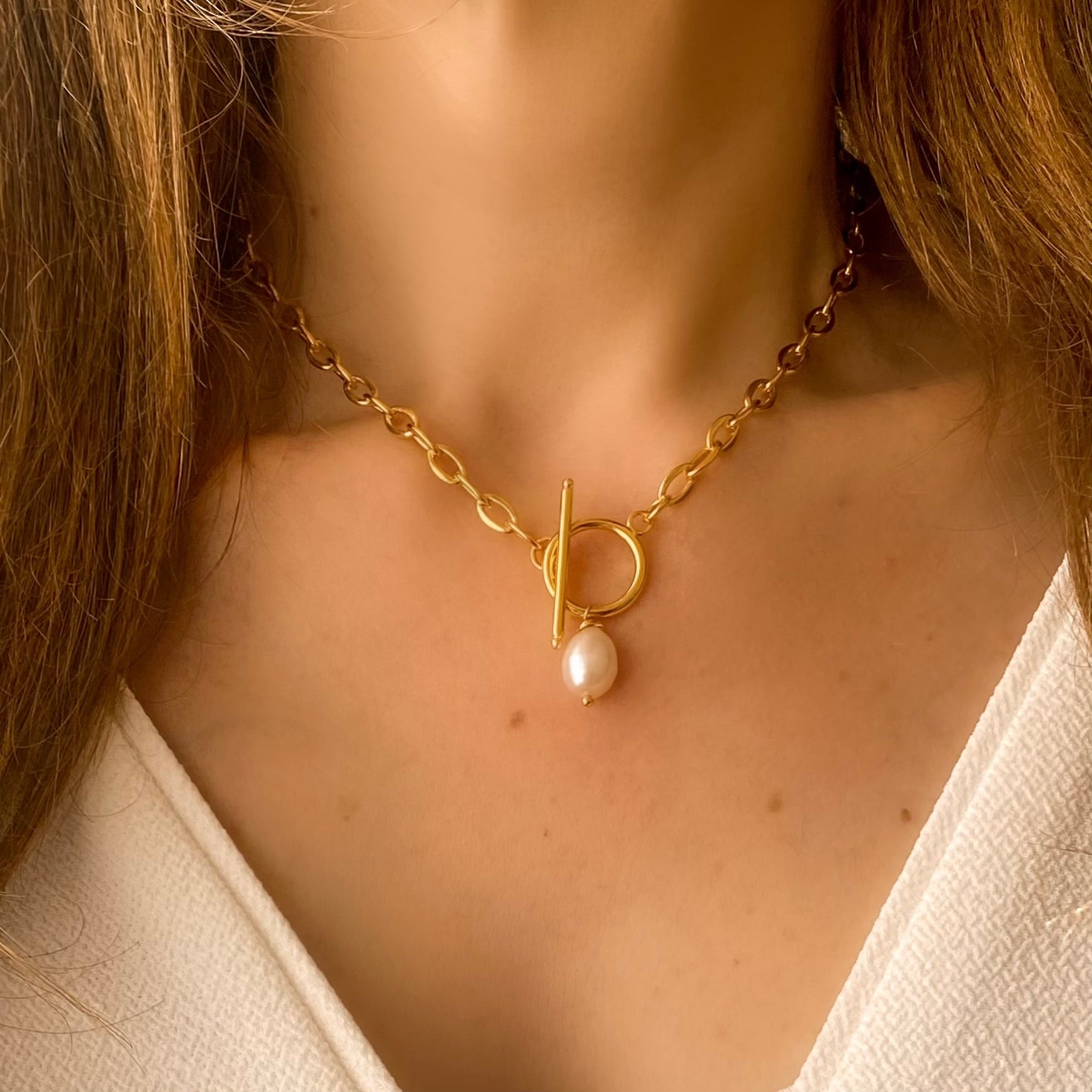 Sublime avec un décolleté délicat ou un col rond fin, où la perle devient le point de lumière du look. Idéal aussi en accumulation avec des chaînes dorées fines pour un style moderne et lumineux.