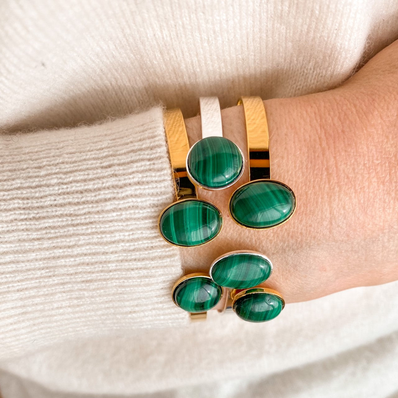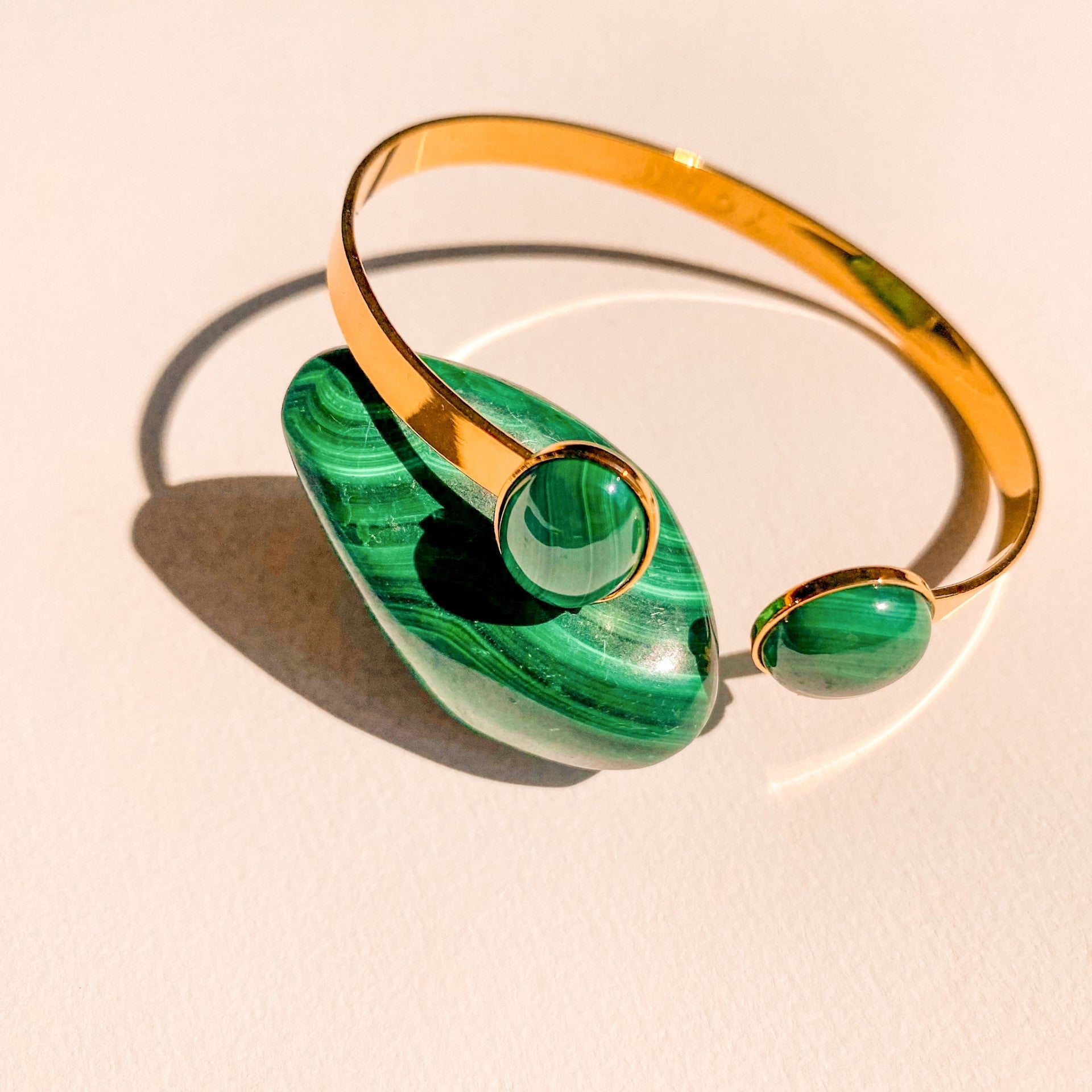 Le jonc Théo doré malachite est l'un des iconiques YOUM : un bracelet lumineux et minimaliste, sublimé par une pierre naturelle de malachite aux nuances verts profondes. Une pièce élégante qui se porte seule ou en accumulation pour un style moderne et raffiné.