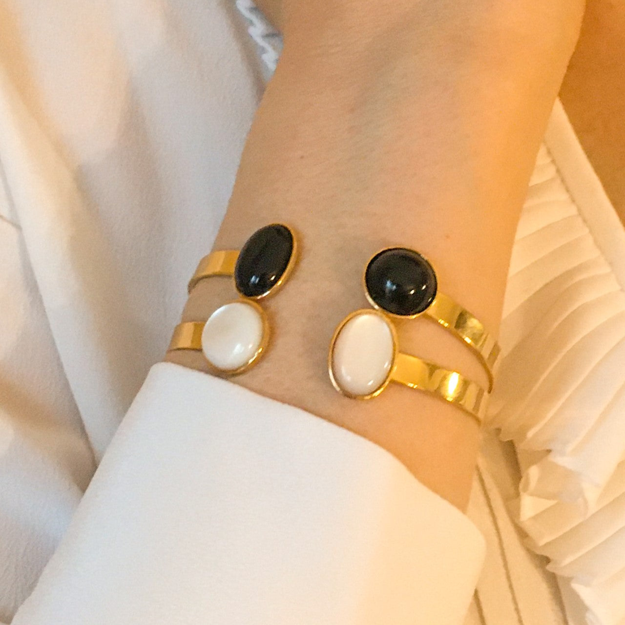 Il est en laiton doré à l’or fin 24 carats, avec des pierres naturelles : agate noire.